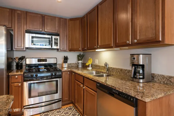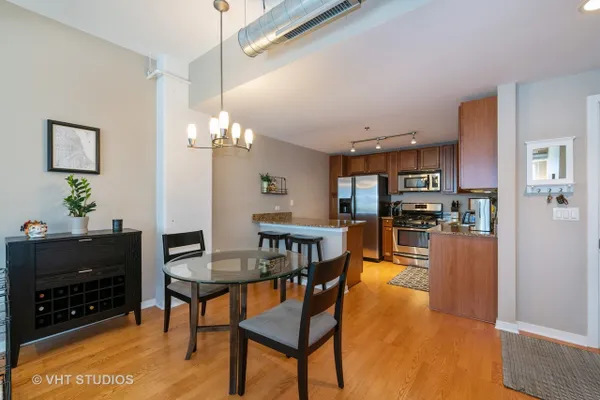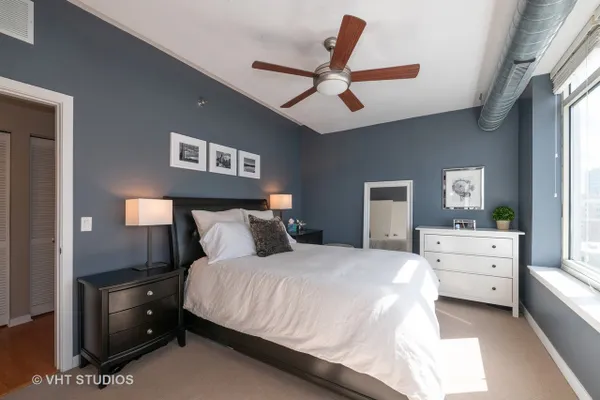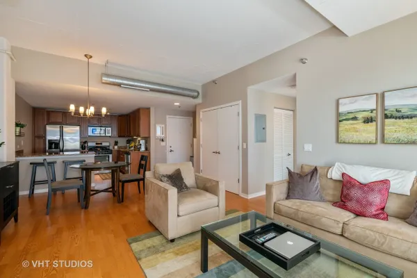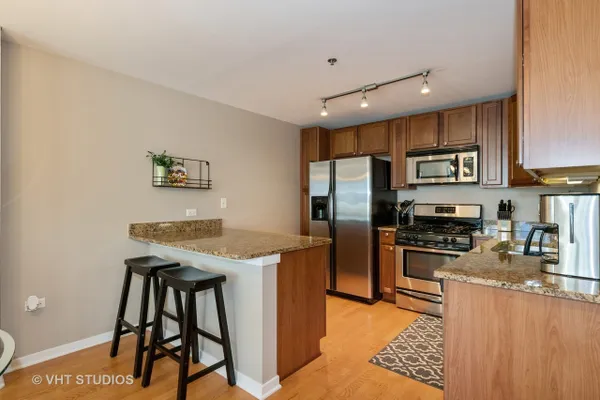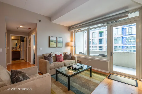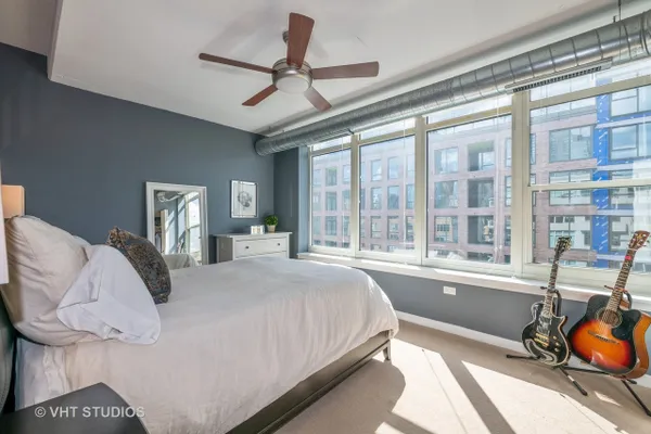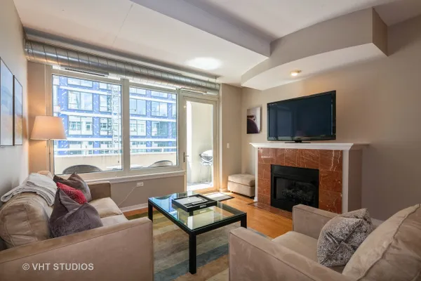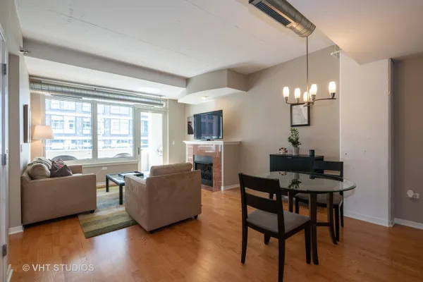 Be Back on Market shortly. Spacious one bedroom with a a perfect open format living/dining area in ideal West Loop location. This well-maintained home comes with stainless steel appliances, granite counters, cherry cabs. Over sized Primary bedroom with 2 built out and organized closets. Gas fireplace, in-unit washer/dryer, marble bath with dual vanity sink and tub shower combo. This west facing unit comes with a generous sized balcony. Building offers fitness room, common sun deck and day time door person. Unit has newer AC condenser, dishwasher and garbage disposal. Deeded Garage Parking is extra $25,000. Walk to Restaurant Row, Monteverde, Hay Market Brewing, Mary Bartime Park, Whole Foods, Marianos and so much more. Easy access to the Loop, CTA, Metra and highways. Investors Welcome!