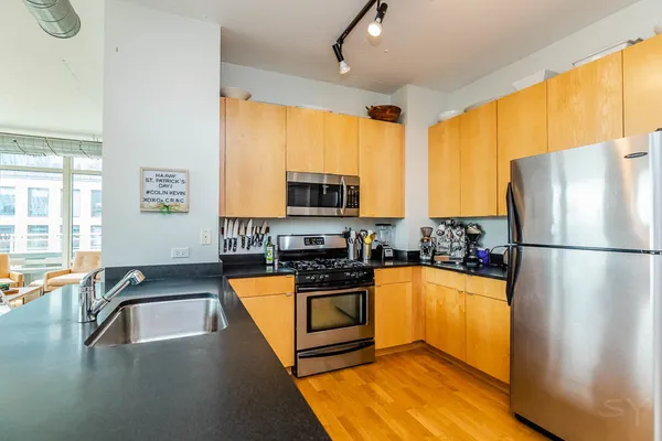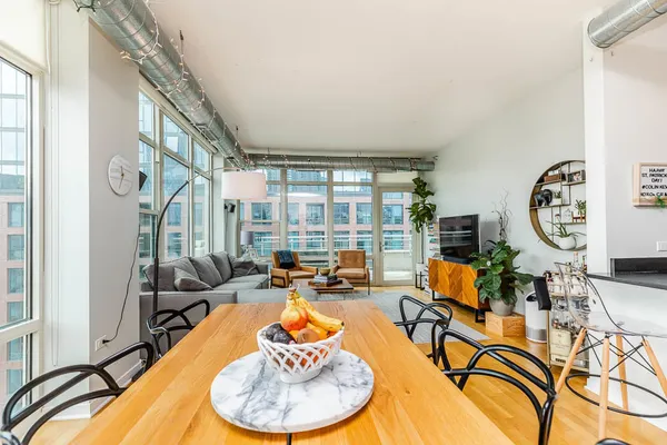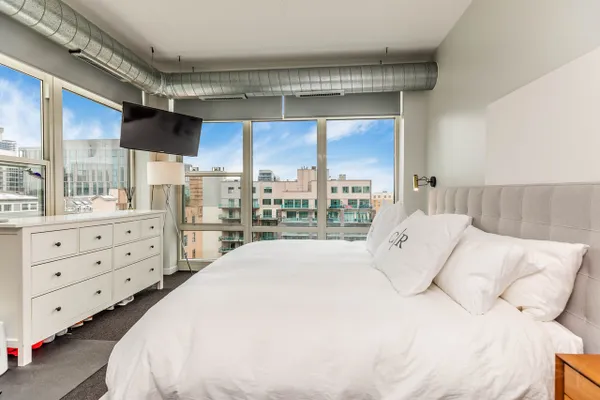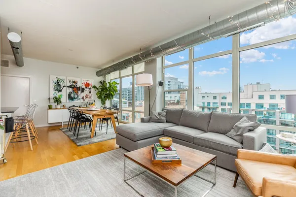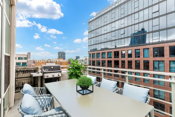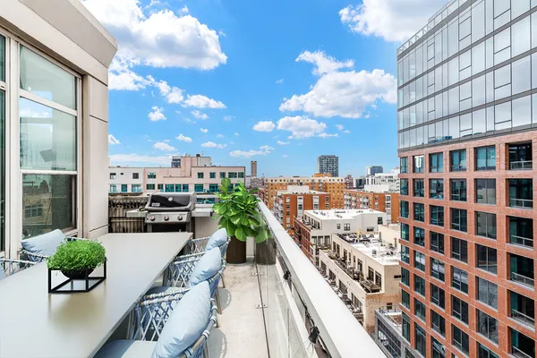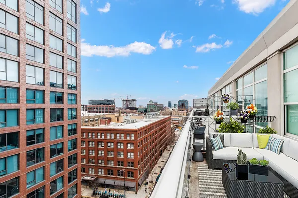 Be the envy of your friends and family with this rare and remarkable Penthouse level Corner unit condo at the highly sought-after 909 W Washington building in the heart of the West Loop! This condo is one of the largest 2 bedroom 2 bath layouts in the building and features an open concept with floor to ceiling windows on the top floor, including both bedrooms. Gorgeous views! Plus, it has one of the largest private outdoor terraces, with nothing but sky above! Perfect for entertaining, there is a dedicated space for a large dining table. Large living room leads to the outdoor terrace where you can enjoy grilling out and taking in the beautiful view in the sun or under the stars. At the end of the day, retreat to the primary bedroom suite where you can enjoy the view or the convenience of the newer motorized black out shades for a good night's sleep. Finishes include sleek and modern flat panel cabinetry in Kitchen and Bathrooms. Primary bathroom features a dual sink vanity and walk-in shower with beautiful marbled tile on shower walls and floor. Stainless Steel Appliances, Hardwood Floors throughout kitchen and main living space. HVAC only 6 yrs new! Additional storage included and deeded garage parking spot available for $25k. Great location, this prestigious building includes door staff & spacious lobby ready to welcome you home, fitness center and a common area outdoor courtyard with beautiful skyline views. This is the perfect central location within the West Loop and conveniently only 1 block from Madison St, but much quieter! Plus, it's just steps away from the beautiful Mary Bartelme Park, SoHo, Mariano's, Whole Foods, the Morgan (Pink/Green) 'L' stop and West Loop's famous Restaurant Row on Randolph! Within Skinner school boundaries! Don't miss this opportunity to own in the heart of one of Chicago's hottest neighborhoods!