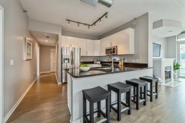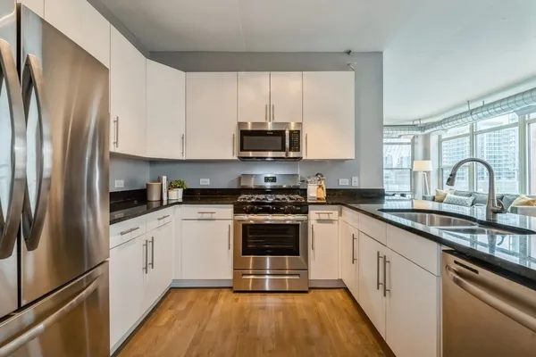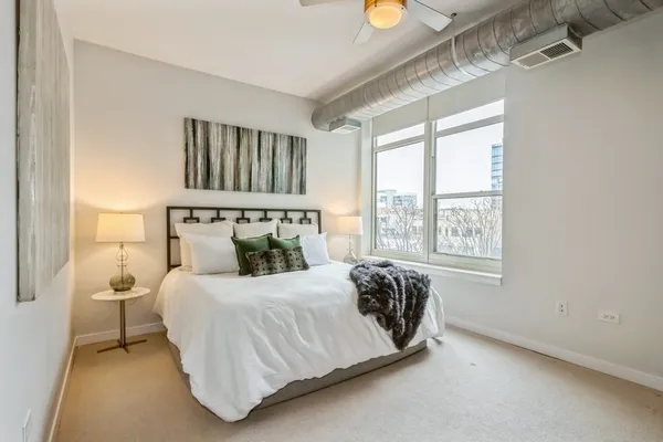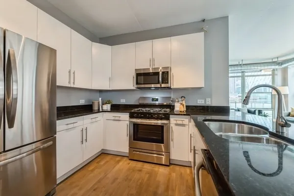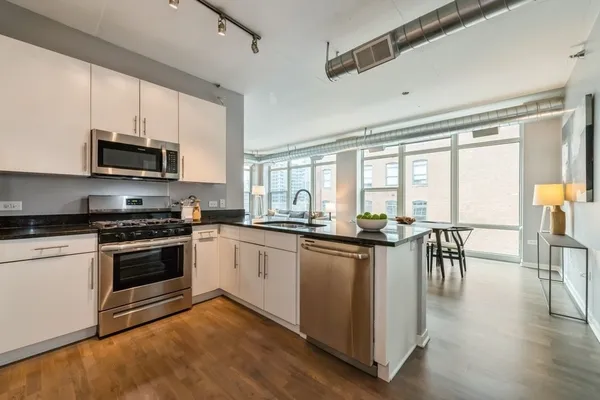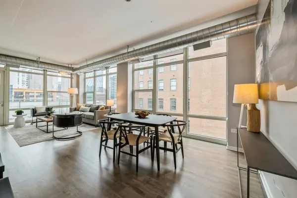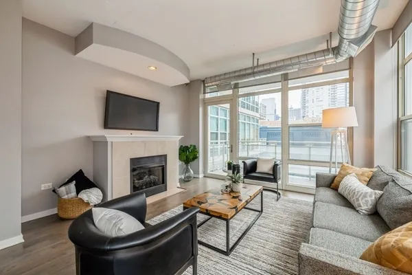 Amazing 2 bed/2 bath condo with wide open floor plan including expansive floor to ceiling windows facing East with city views! New SS appliances, new refinished hardwood floors, fireplace and plenty of room for living and dining. Master suite includes large walk in closet double bowl private bath. Second bed has plenty of natural light and custom closet. Building amenities include door person, updated fitness center, beautiful outdoor common area terrace and new fully renovated lobby. First floor of building includes Dunkin Donuts, Chase Bank, dry cleaners, nail salon, UPS store, and sushi restaurant. Steps to Randolph Row, Fulton Market, restaurants, expressways, parks, shopping and all the West Loop has to offer! Located in Skinner school district. 909 W Washington is one of the only buildings that allows owners to rent. Great investment unit! ONE HEATED PARKING SPOT INCLUDED IN PRICE!