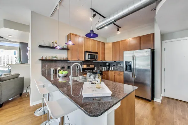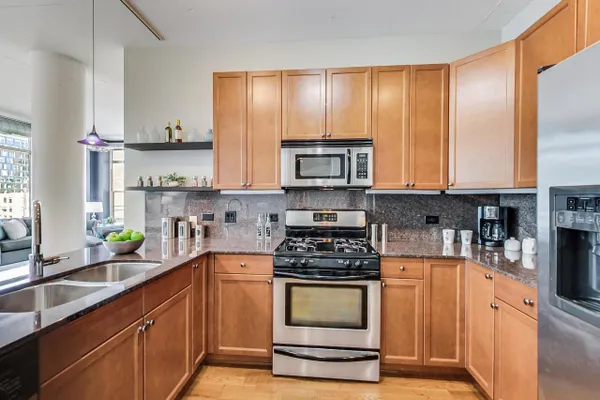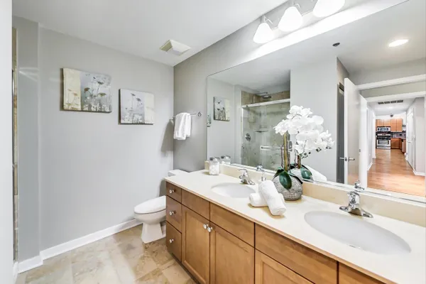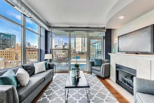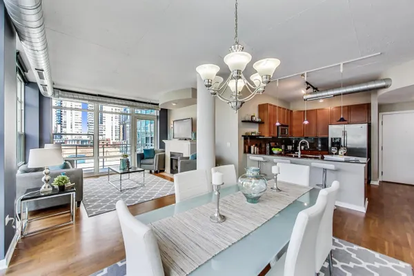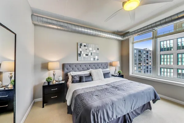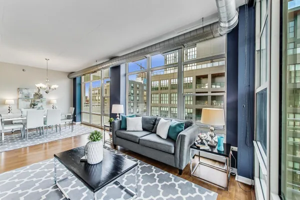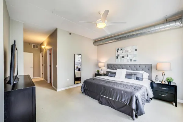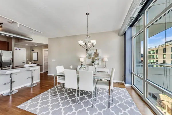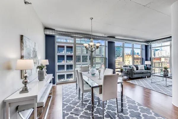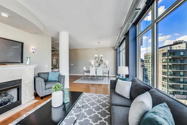 909 Washington is a Coveted boutique elevator building. This generous sized open floor plan corner unit boasts almost 1400 square feet. 2 bed, 2 bath condo with 2 balconies and 2 side by side garage parking spaces available for purchase. The unit faces north and east with 3 floor to ceiling walls of windows offering lots of natural light and sweeping skyline views. Open kitchen has granite countertops and matching backsplash with stainless steel appliances. The primary suite is large enough to accommodate a king size bed and 2 night stands. En suite full bathroom has dual vanity sinks and separate tub and shower. A Walk in closet and it's own balcony completes this bedroom oasis. Newer GE Full size front load washer and dryer. The assigned storage unit is a floor to ceiling walk in cage. Restaurant Row is right around the corner for nightly outings to experience some of Chicago's finest dining. Easy access to the Green Line el stop, Whole Foods, Mary Bartleme Park. The building has a sundeck, fitness room, Amazon hub and daytime door staff 7 days a week. If that isn't enough, the building is pet friendly, a Chase bank branch, sushi restaurant, a UPS store, Dunkin Donuts and a nail salon. Amazing West Loop location walk to virtually everything the neighborhood has to Offer! Great for Investors, rentals allowed with no cap. '13 tier is the largest 2/2 in the building Parking Assessment is $44.34 for each space and 2021 RE Tax for parking is $730.15/each